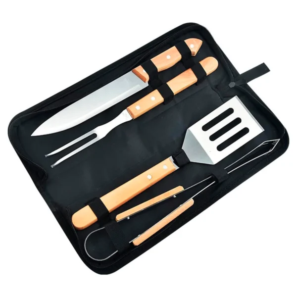 Descripción: Set parrillero de 4 piezas en acero inoxidable, ideal para asados en casa o al aire libre. Resistente, práctico y fácil de limpiar. Contiene: 01 pinza, 01 tenedor, 01 cuchillo, 01 espátula multiuso.