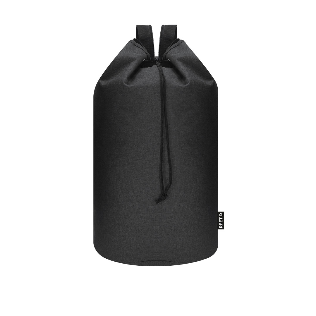 Petate multiusos de gran capacidad en resistente poliéster RPET 600D. Cierre superior de cuerda con accesorio de ajuste y argollas metálicas reforzadas. Cinta de hombros trasera 2 en 1 con cierre de cremallera para transporte en un solo hombro o en los dos. Con distintivo de RPET en etiqueta.El material RPET se elabora a partir de plástico reciclado, para así fomentar la reutilización de residuos plásticos y ayudar a la sostenibilidad del planeta. Cinta 2 en 1 con Cremallera
