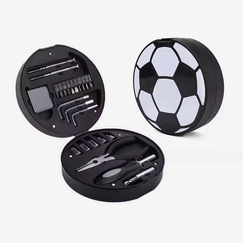 Material de estuche: plástico. medida: 16 cm de ancho. incluye: desarmador, 5 dados, adaptador, puntas de desarmador, desarmadores punta plana y estrella, wincha, alicate.